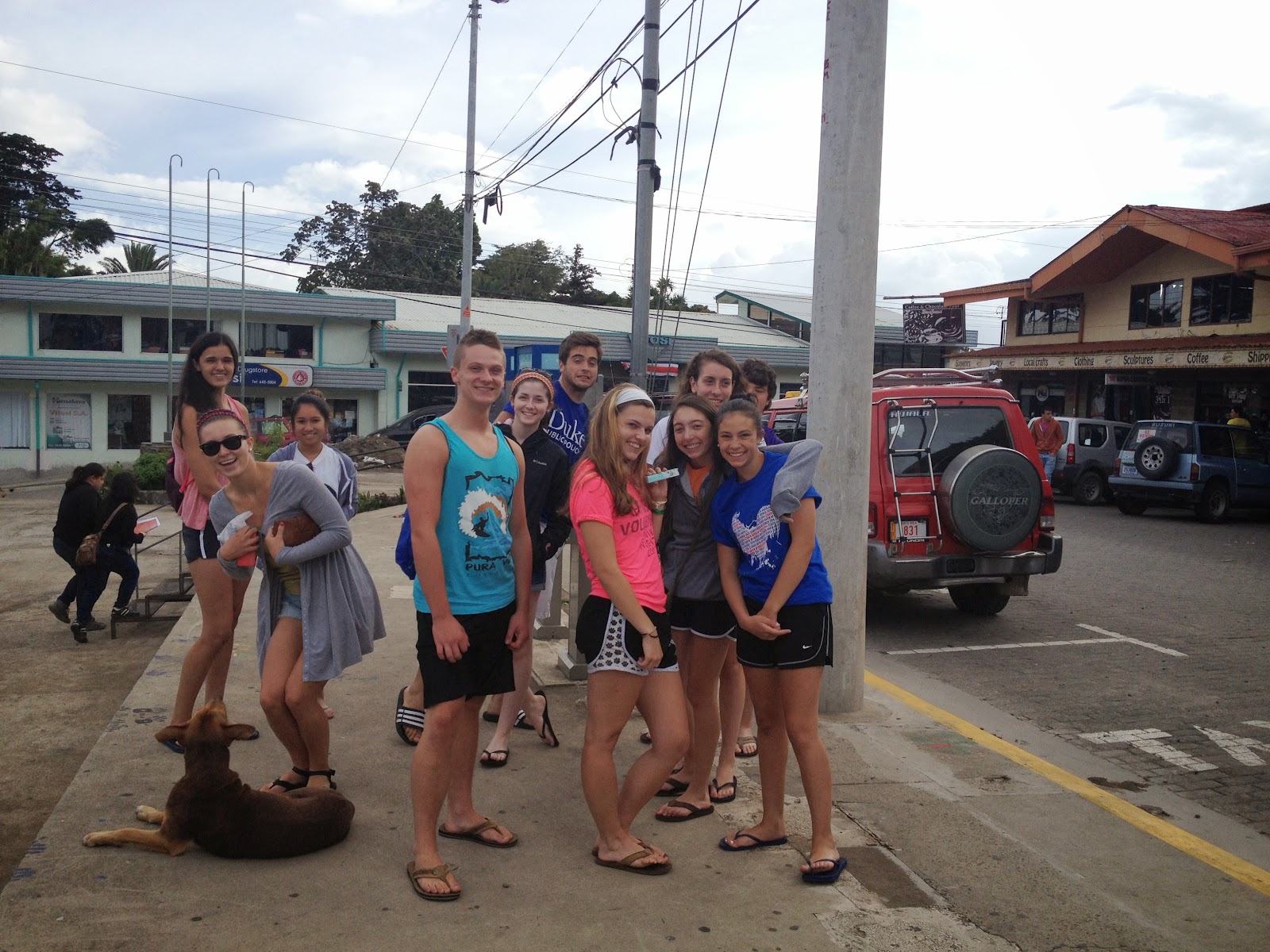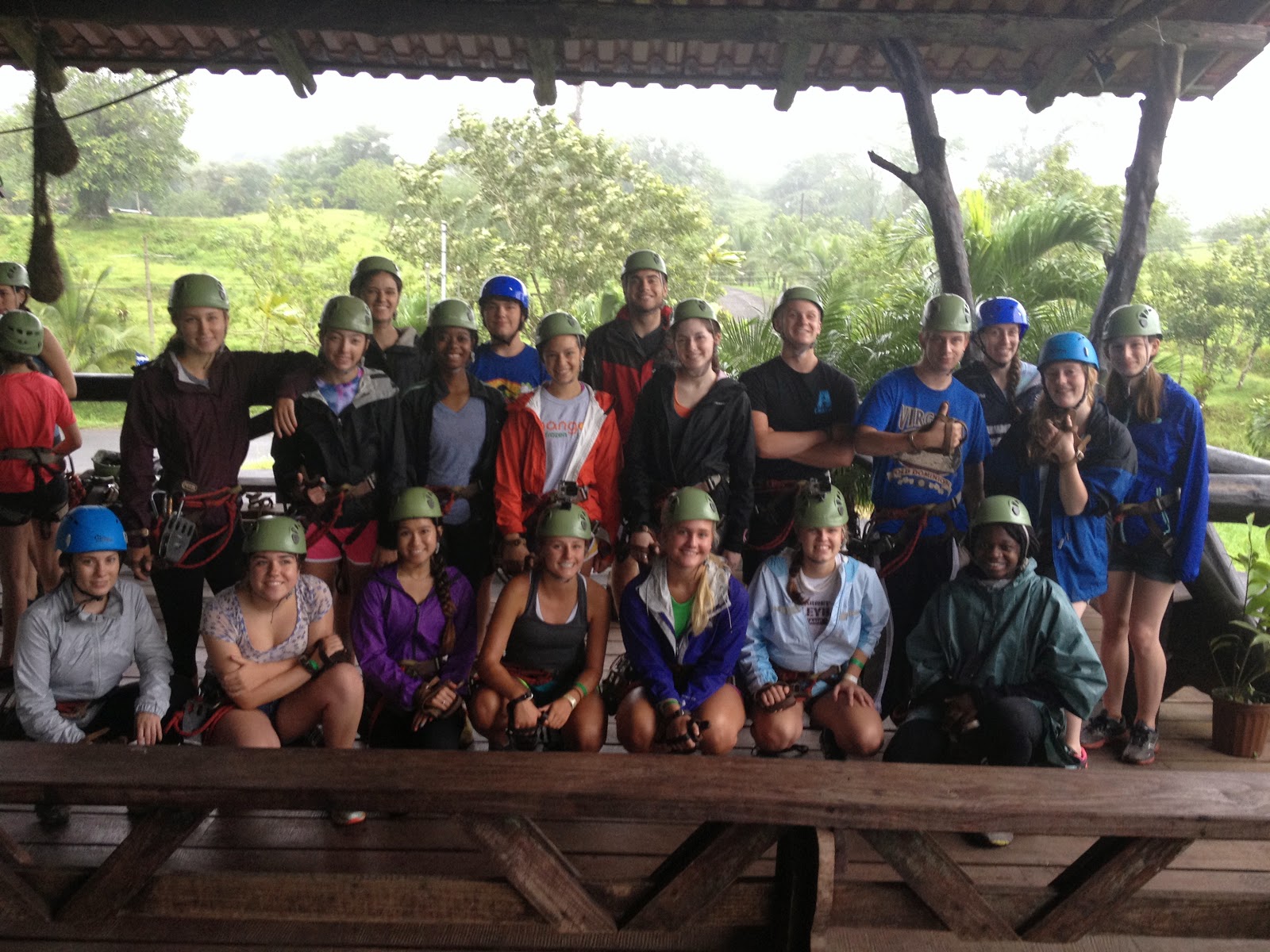 Today was the highly anticipated zip line tour. Unfortunately it was pouring rain. Students and Ms. Kaneda suited up in their harnesses and helmets for the adventure. After a safety explanation, they climbed the tower of stairs to clip onto the cable that led them through the canopy tour of 11 platforms. At first they thought the rain was going to be a problem but in the end they thought it made it more fun and faster. Overall everyone came back soaking wet but super excited from their adventure. (Thanks to Jen Rowan and her GoPro for photos)